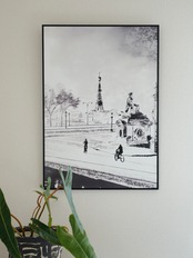 パリのセーヌ川にかかる橋の上から見た風景を描きました。